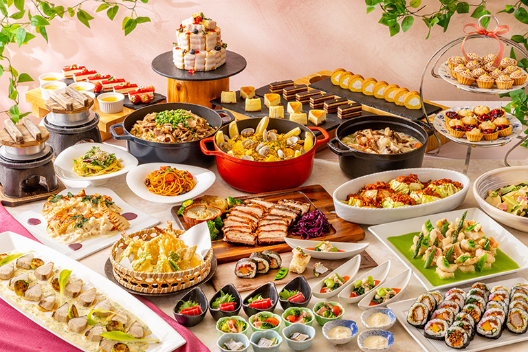 当ホテルでは全ての料理を同一調理場で調理しております。ブッフェレストランにおきましては、7品目(卵、乳、小麦、えび、かに、そば、落花生)の使用について表示しております。これらは表示している特定原材料がその料理に使用されていることを明記したものであり、記載のない特定原材料がその料理に含まれていないことを保証するものではありません。