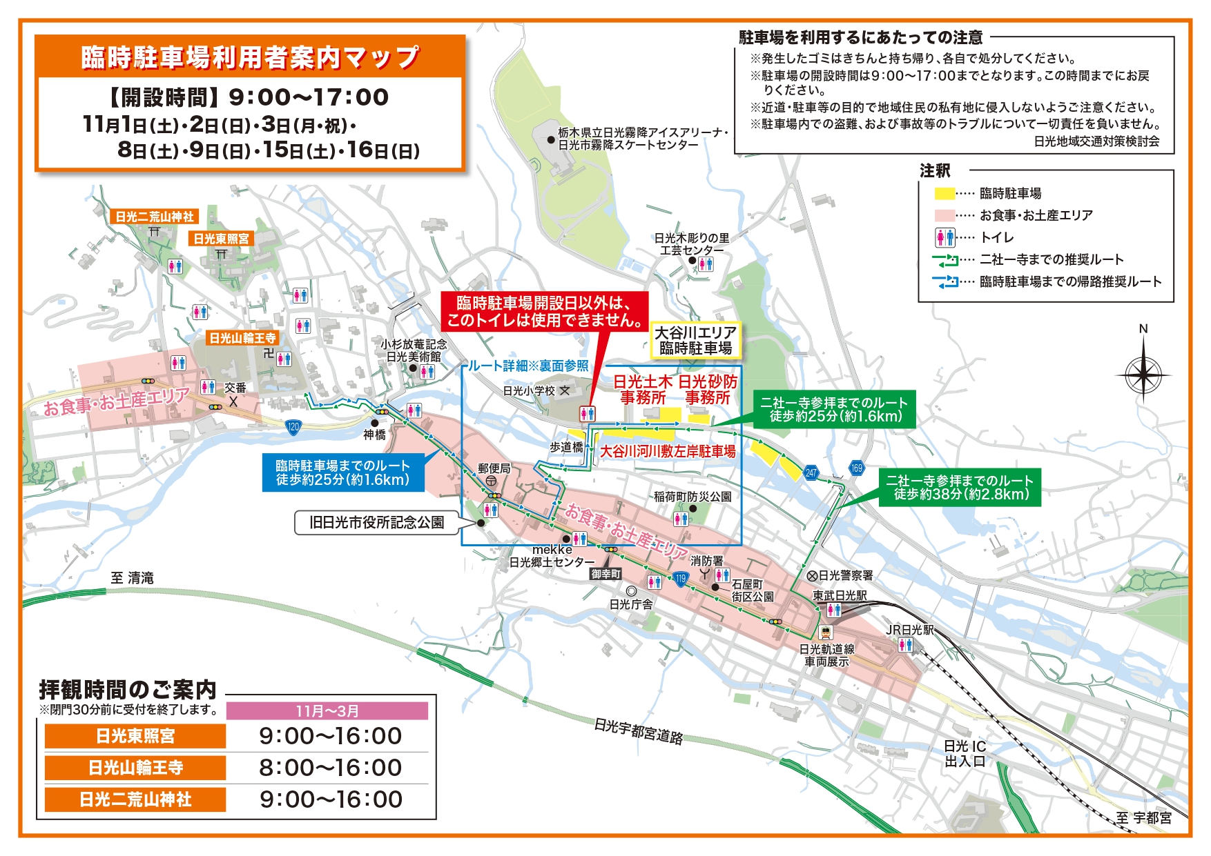 場所 日光東照宮駐車場、日光山輪王寺第二駐車場、日光二荒山神社駐車場 等
