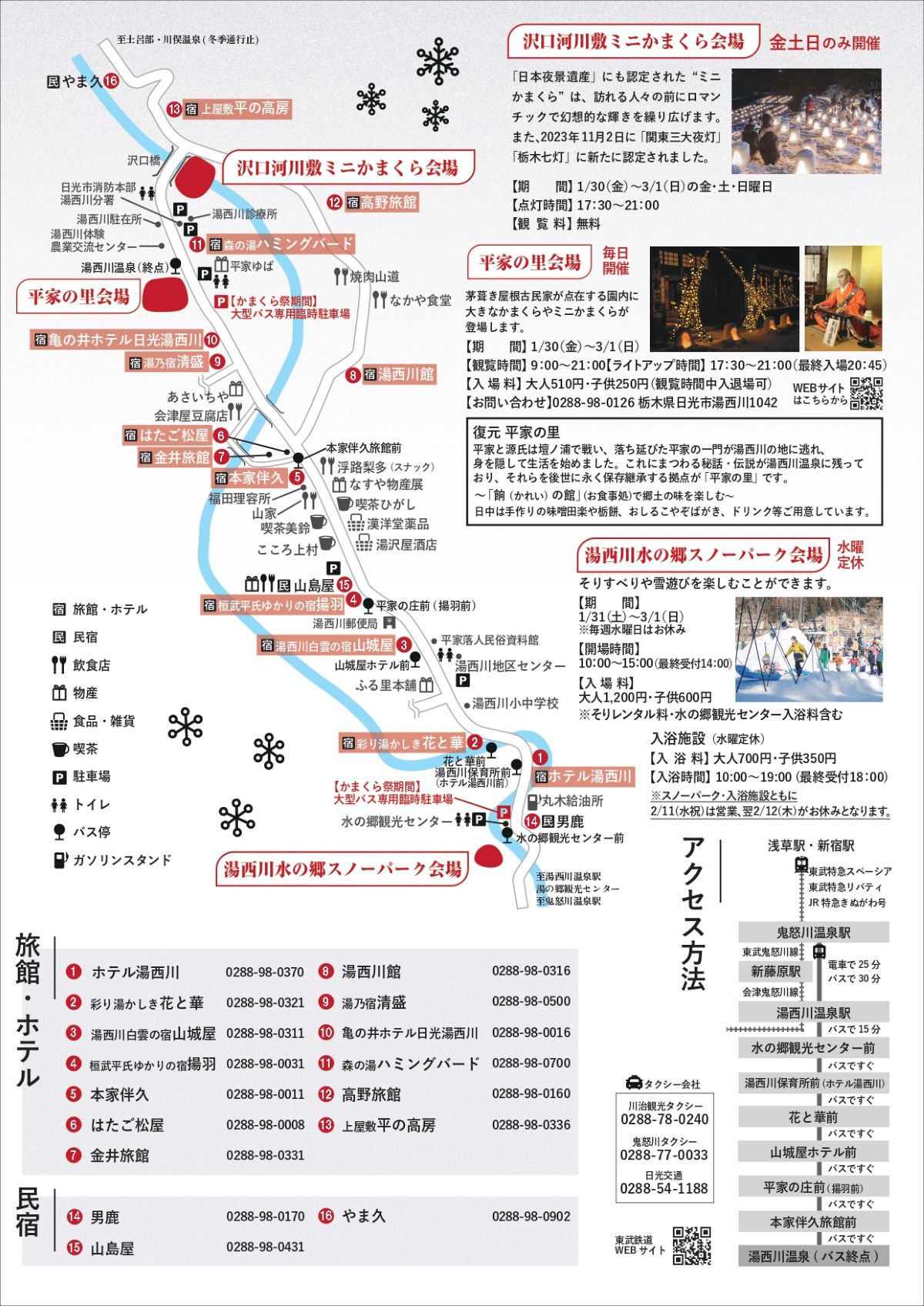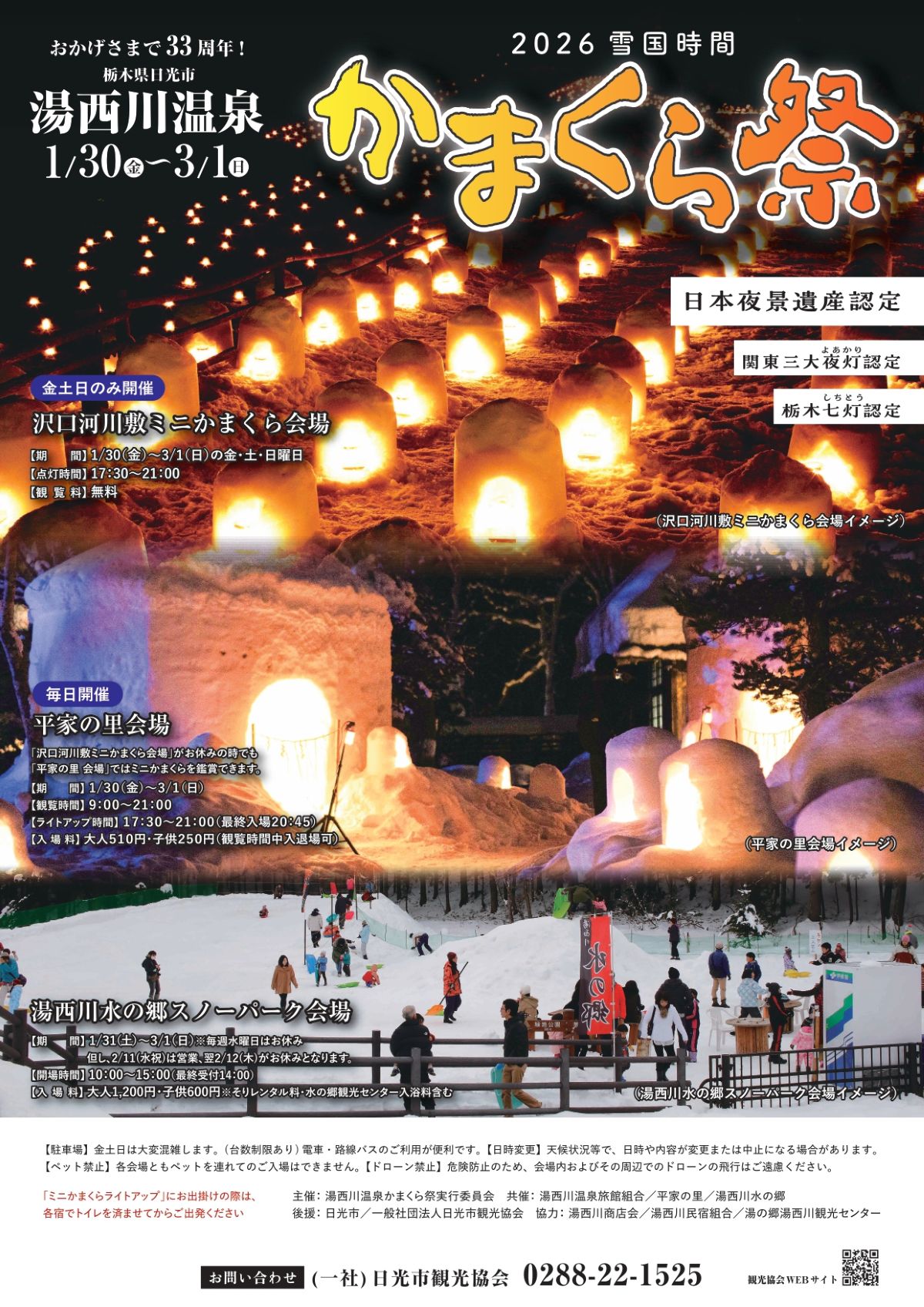 鬼怒川温泉から車で約40分ほどの場所にある湯西川温泉では、1月30日から3月1日まで「湯西川温泉 かまくら祭」が開催されます。