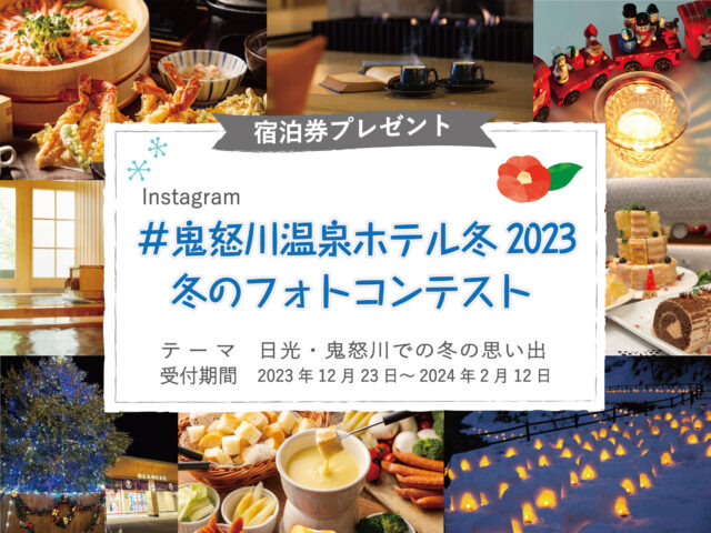 - ハッシュタグ「#鬼怒川温泉ホテル冬2023」「#鬼怒川温泉ホテル」をつけて投稿