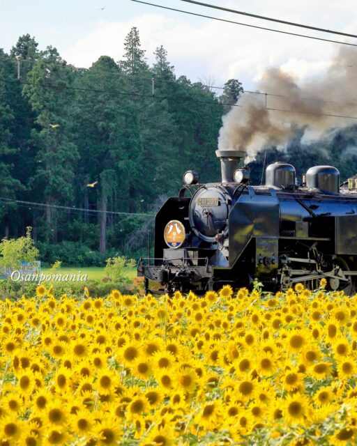ひまわり畑の絨毯を力強く走るSL大樹🚂
