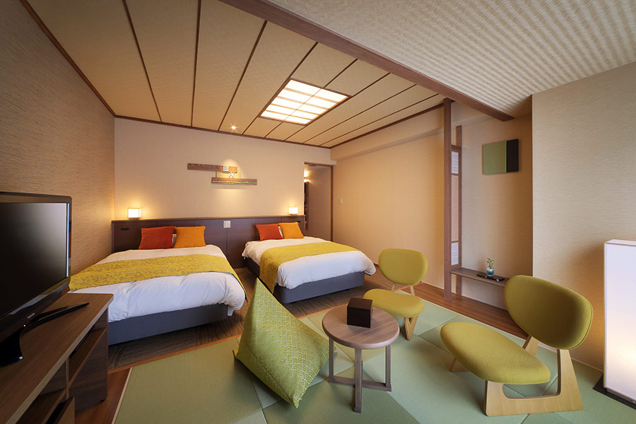 31.6平米(シモンズベッド2台+和室)全室渓谷側 全室バス・シャワートイレ付 |